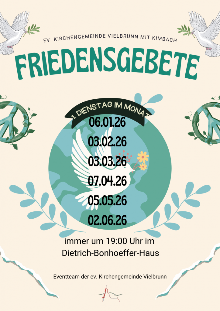 Wir feiern jeden 1. Sonntag im Monat um 10.00 Uhr Gottesdienst in Vielbrunn und um 11.00 Uhr Gottesdienst in Kimbach. Jeden 3. Sonntag im Monat findet um 10.00 Uhr Gottesdienst in Vielbrunn statt. Wir freuen uns auf viele GottesdienstbesucherInnen