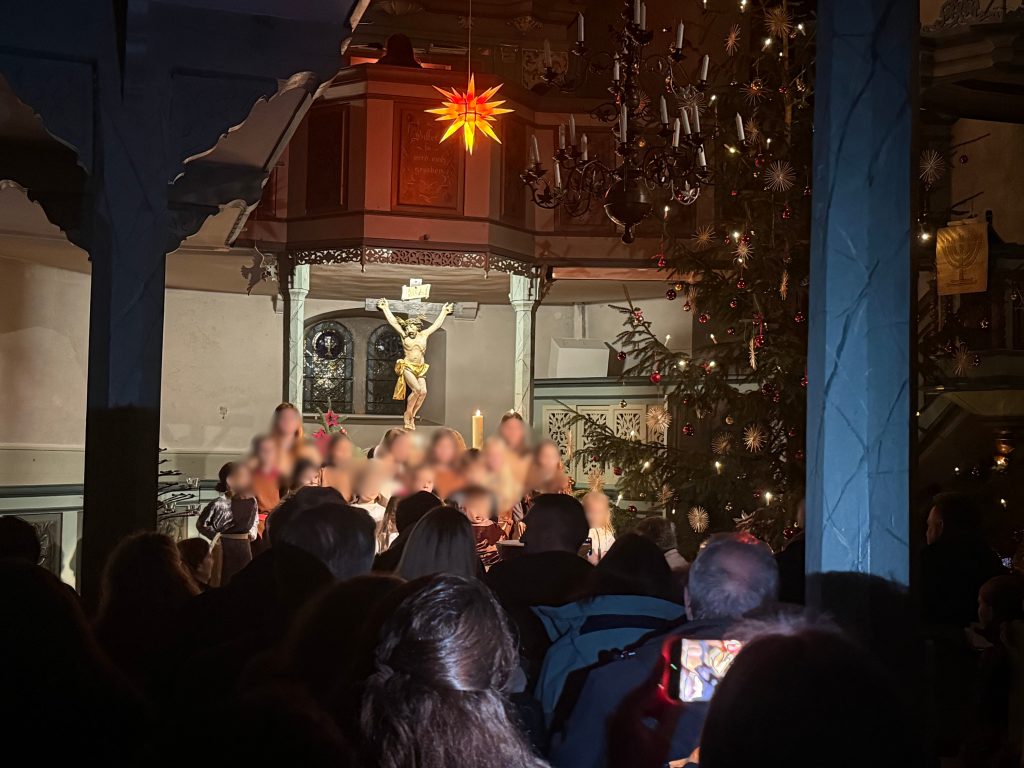 Während des traditionsreichen Liedes „Oh du fröhliche“, zogen die Kinder des Krippenspiels und das Kindergottesdienst-Team aus dem Gottesdienst aus. Für das Team und die Kinder ist klar, nächstes Jahr gibt es wieder ein Krippenspiel.